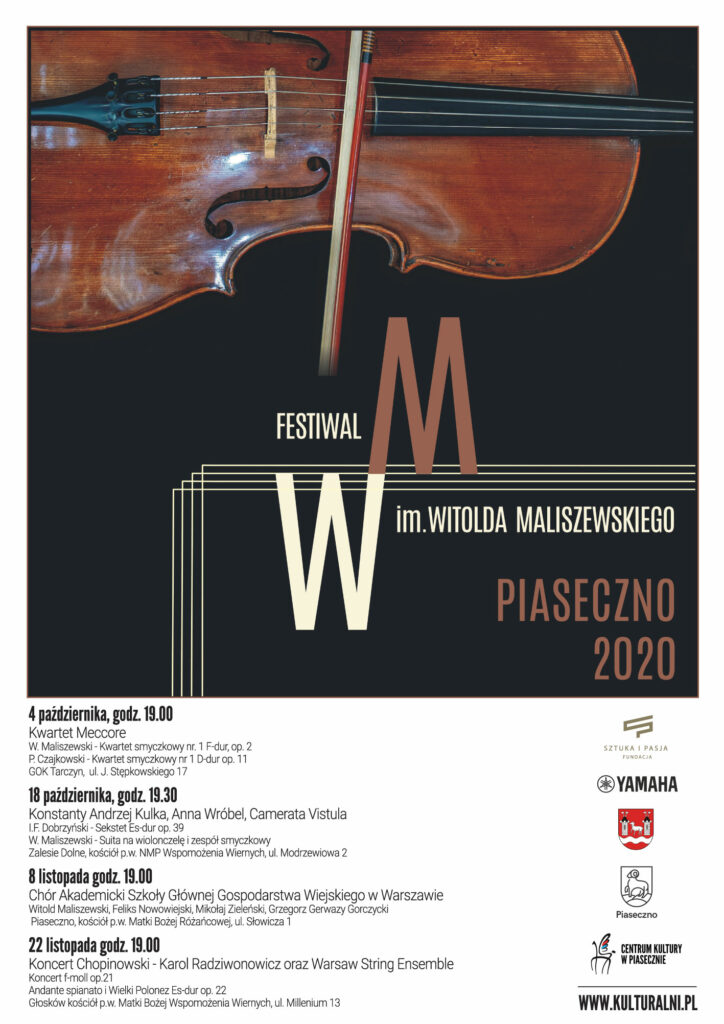 Urząd Marszałkowski Województwa Mazowieckiego, Centrum Kultury w Piasecznie, Starostwo Powiatowe w Piasecznie, Ośrodek Kultury w Górze Kalwarii oraz Fundacja Sztuka i Pasja zapraszają na koncerty III Festiwalu im. Witolda Maliszewskiego!…